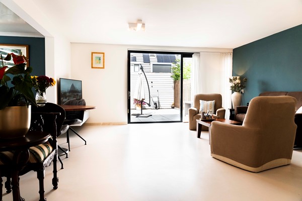 Woonkamer, is voorzien van een gietvloer met vloerverwarming, 1 jaar oud.