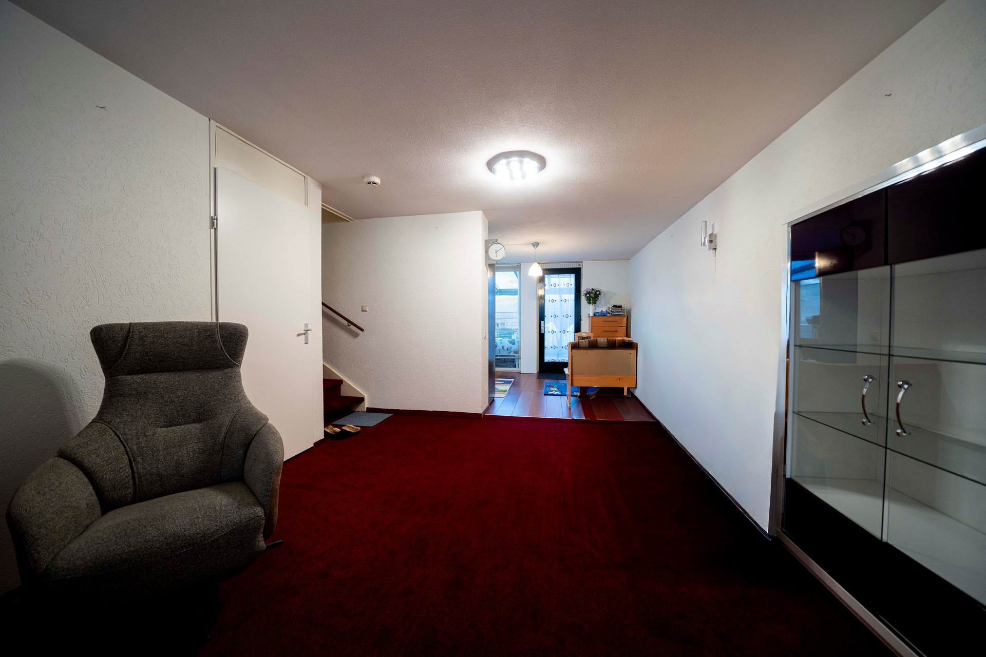 Binnenkomen doe je in een hal die uitnodigend openloopt naar de riante woonkamer. Je voelt het meteen: aan ruimte geen gebrek! De grote raampartijen laten het daglicht speels binnenvallen en geven gelijk een huiselijk gevoel. Of je nu ’s avonds samen wilt eten aan een grote tafel of de boel wilt omgooien voor een zaterdagmiddag vol bouwblokken of knutselspullen, deze living vormt zonder twijfel het bruisende hart van het huis.